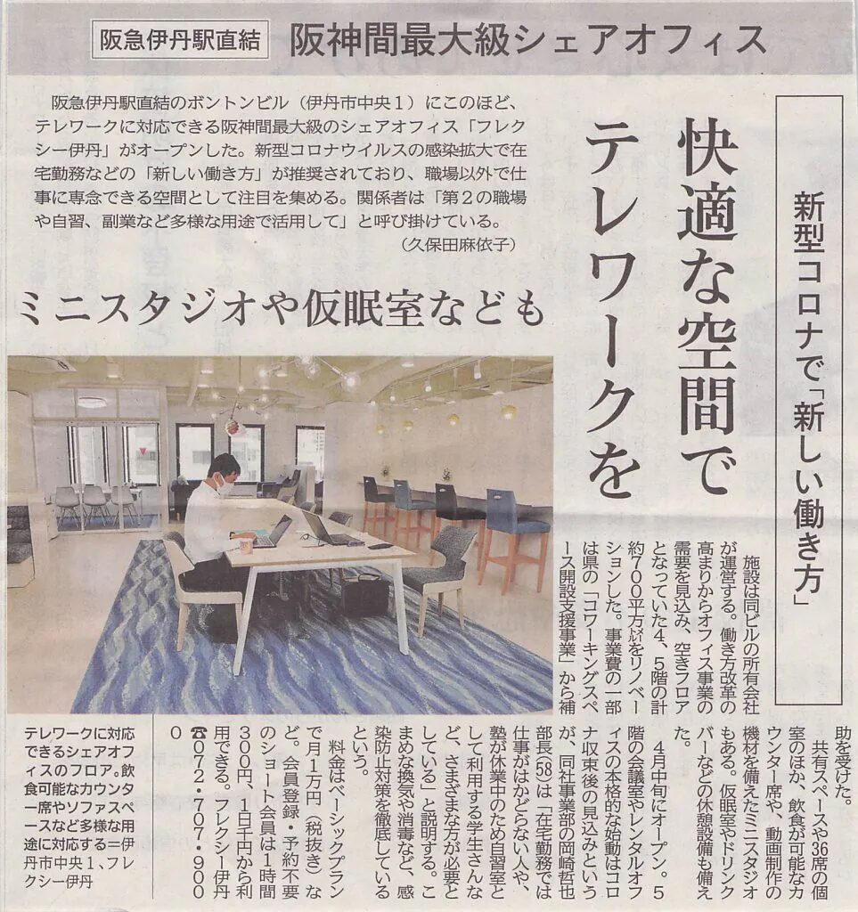 【メディア掲載】神戸新聞にてFlexy伊丹(フレクシ―伊丹)が紹介されました 2025 10/05 メディア掲載情報 2020.05.31 2020年5月31日の神戸新聞にてFlexy伊丹(フレクシ―伊丹)が紹介されました。 記事全文 メディア掲載情報