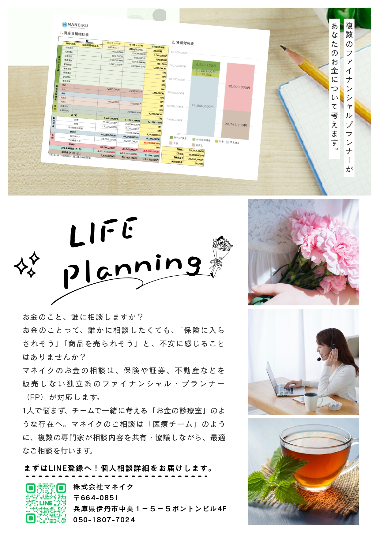 マネイクは、「売らない・押しつけない」を理念に掲げ、人生に寄り添ったお金のご相談を行う独立系ファイナンシャルプランナー(FP)チームです。