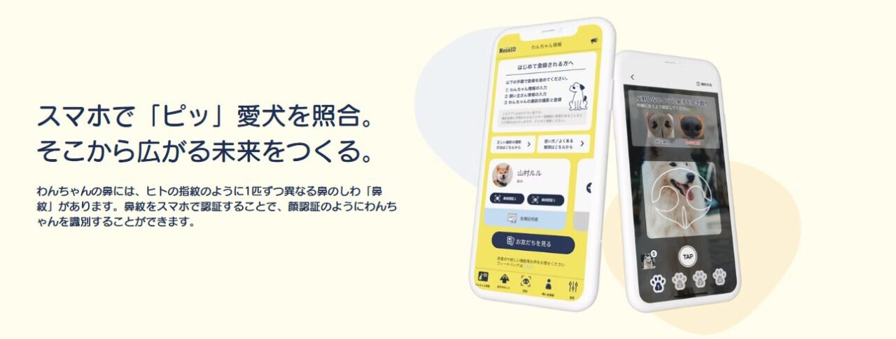 中心となるサービスは、犬の鼻紋をスマホで認証するアプリ「Nose ID」です。