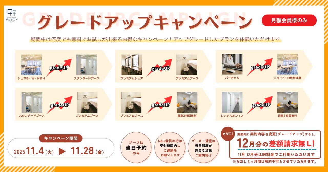 【11月4日より】月額会員様向けグレードアップキャンペーンのお知らせ