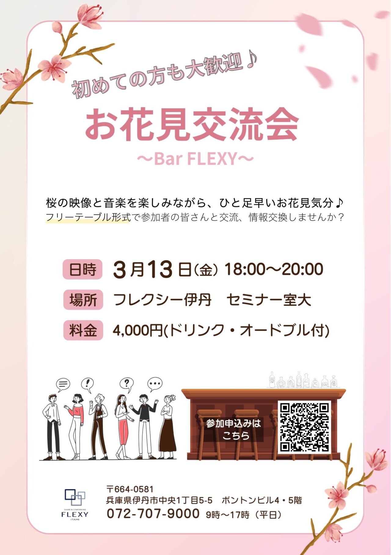 このたび、ひと足早くお花見気分を楽しめる交流イベント「お花見交流会 ~Bar FLEXY~」 を開催いたします。